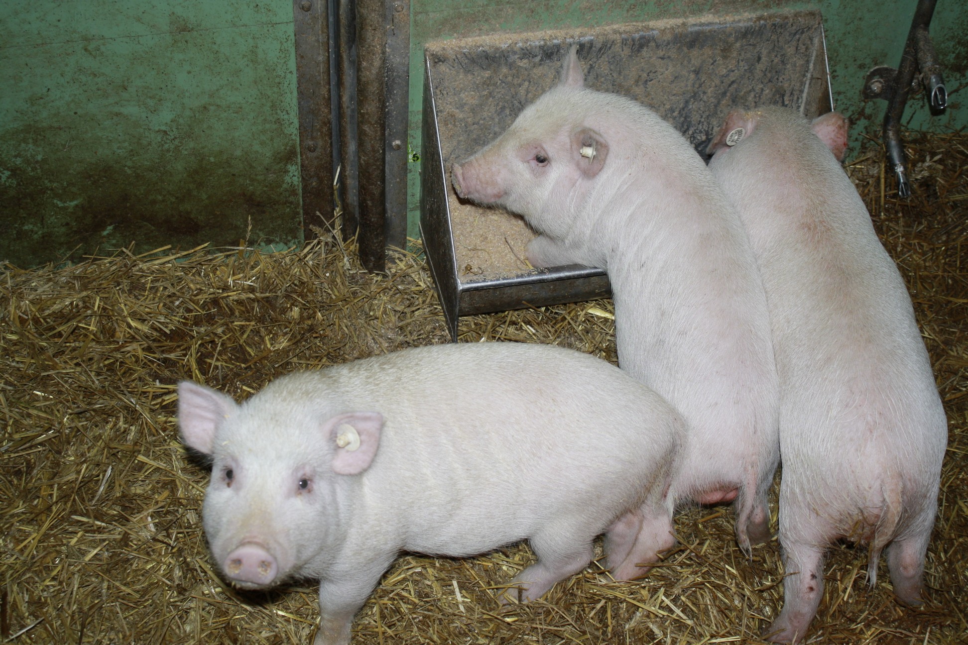Ferkel beim Fressen im Stall Landwirtschaft © Hannes Schleeh